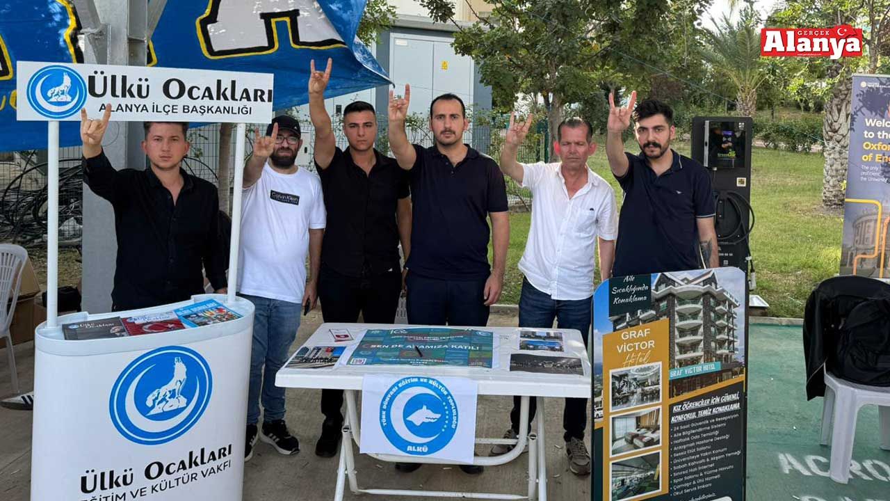 Gerçekleştirilen faaliyet ile bilgiler veren Alanya Ülkü Ocakları Başkanı Yunus Kerim Sezer, “Ülkü Ocakları Alanya İlçe Başkanlığı olarak Alanya Alaaddin Keykubat Üniversitesi’nde (ALKÜ) açmış olduğumuz ocak standımızı ziyaret ederek üniversiteli kardeşlerimizi ocağımız hakkında bilgilendirdik ve üniversitemizdeki diğer kulüplerin standlarını da ziyaret ederek genç kardeşlerim ile hasbihal edip dertlerini, ihtiyaçlarını dinleyip gençlerimize desteklerimizi sunduk” dedi. – Yasemin Kaya