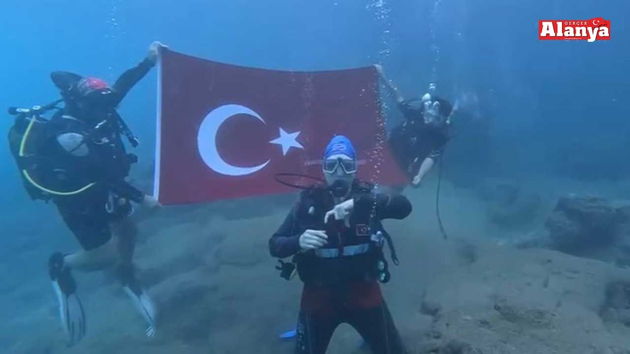 Gazipaşa İlçe Milli Eğitim Müdürlüğü'nde görev yapan Şeyda Demiryürek ve ekibi, Cumhuriyet Bayramı'nı denizin derinliklerinde gerçekleştirdikleri anlamlı etkinlikle kutladı. Sabahın erken saatlerinde Alanya İskelesi'nden hareket eden tekne, Alanya Kalesi açıklarına ulaştıktan sonra dalgıçlar suya daldı. Gazipaşa ve Alanya'dan gelen dalgıçlar, denizin altında Türk bayrağını açarak Cumhuriyet'in 102. yılını kutladı. Etkinliğin en dikkat çekici anlarından biri ise dalgıçların su altında işaret diliyle İstiklal Marşı'nı okumaları oldu. Su Altı Sporları Federasyonuna bağlı uzman dalgıç olarak görev yapan Şeyda Demiryürek, "Biz daha önce 30 Ağustos Zafer Bayramı'nı Gazipaşa'da arama kurtarma birimi olarak kutlamasını gerçekleştirdik. İşaret diliyle İstiklal Marşı'nı okuduk. Bugün Cumhuriyetimizin 102. yılını kutlamak için Alanya'da toplanmış bulunuyoruz. Buradaki bütün uzman arkadaşlarımız dalışa katılacaklar. Deniz altında bayrak açacağız" dedi. – İHA
