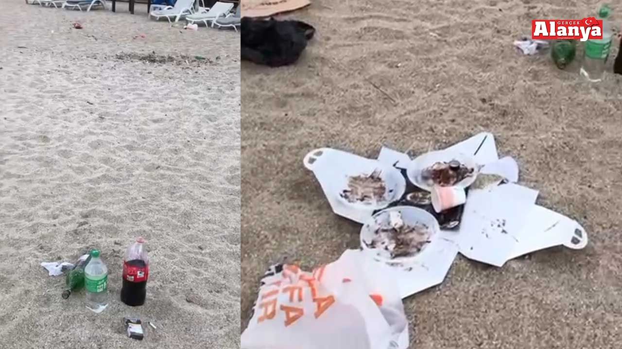 Alanya’nın Damlataş Sahili’nde bir araya gelen kişi ya da kişiler yaş pasta kesip içki içmelerinin ardından geride çöplerini bırakarak bölgeden ayrıldı. Sabah saatlerinde sahilde yürüyüş yapan duyarlı bir vatandaş gördüğü manzaraya tepki gösterdi. Şahit olduğu durumu cep telefonu ile kaydeden vatandaş, “Lanet insanlar. İçiyoruz, hiç olmazsa şu nimetleri kaldırın buralardan. Turistlere laf demeye gerek yok. Yapanlar belli” diye konuştu.