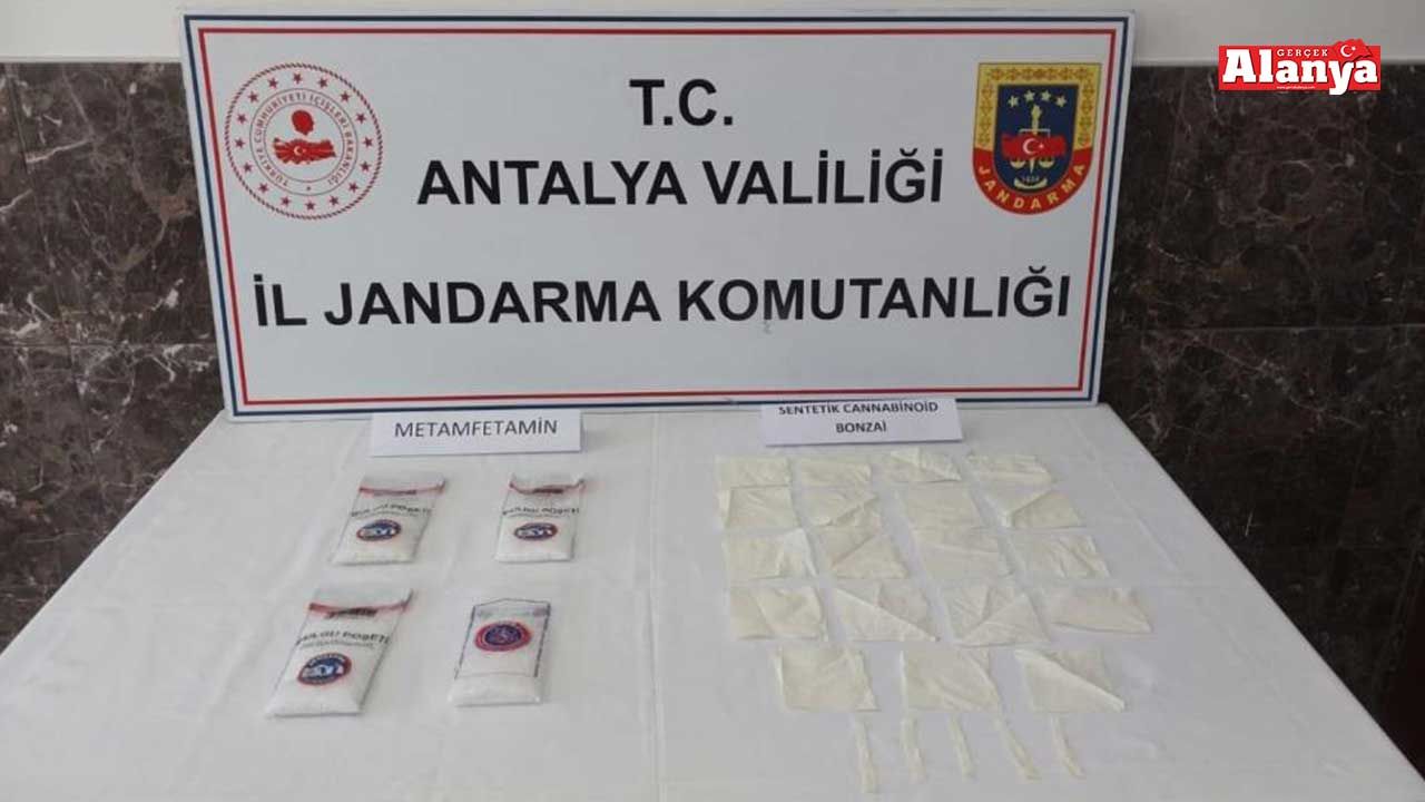 Antalya İl Jandarma Komutanlığı Narkotik Şube Müdürlüğü ve Mahmutlar Jandarma Karakol Komutanlığı sivil ekiplerince yürütülen takipli narkotik ve planlı istihbarat faaliyeti kapsamında, Mahmutlar Mahallesi’nde uyuşturucu madde ticareti yaptığı tespit edilen şüpheli Z.Y.’ye yönelik operasyon düzenlendi. Ekiplerce yapılan aramalarda 1 kilo 230 gram metamfetamin ve 4 bin 500 kullanımlık A4 sentetik kannabinoid (bonzai) ele geçirildi. Gözaltına alınan şüpheli Z.Y. çıkarıldığı Sulh Ceza Hakimliğince tutuklanarak cezaevine gönderildi. - İHA