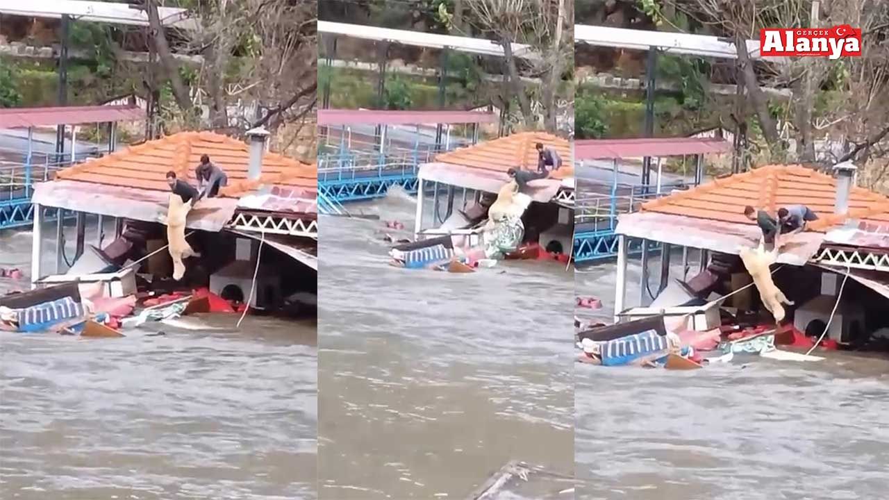 Baraj tahliyesi ile birlikte su seviyesi yükselen Dim Çayı'nda bulunan piknik alanları büyük hasar görürken, bir köpek sular altında kalmaktan son anda kurtuldu. Hilal Piknik işletmecisi Serkan Şimşek ve beraberindeki kişi kendi canlarını riske atarak köpeği kurtardı. O anlar cep telefonu kameralarına yansıdı.