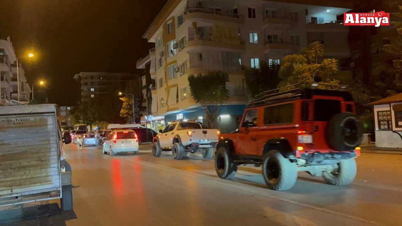 Alanya’da bir araya gelen off-road severler, Hacımemişler Camii önünde toplanarak İsrail’in Gazze’de sivillere yönelik gerçekleştirdiği saldırıları protesto etti. Türk bayrakları ve Filistin bayraklarıyla donatılan araçlarla ‘Zulme off, Gazze’ye on’ sloganıyla oluşturulan konvoy, şehir merkezinde tur attı. Vatandaşlar ellerinde pankartlarla İsrail’in saldırılarını kınarken, Gazze halkına destek mesajları verdi. Etkinliğe katılanlar, tüm dünyayı Gazze’de yaşanan insanlık dramına sessiz kalmamaya çağırdı. Konvoy, şehir turunun ardından sona erdi. - İHA