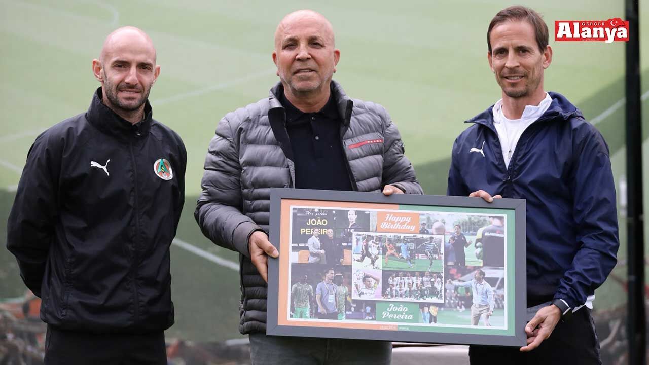 Alanyaspor, Trendyol Süper Lig’in 24. Haftası’nda deplasmanda Galatasaray ile karşıya gelecek. Karşılaşma öncesi Alanyaspor hazırlıklarını sürdürdü. Kulüp tesislerinde Teknik Direktör Joao Pereira yönetiminde yapılan çalışma ısınma hareketleriyle başladı. Antrenman, pas organizasyonlarıyla devam ederken, idman, taktik ağırlıklı çalışmalarla sona erdi. Antrenman öncesi teknik direktör Joao Pereira’nın doğum günü kutlaması yapıldı. Alanyaspor Kulüp Başkanı Hasan Çavuşoğlu, Pereira’ya eski ve yeni fotoğraflarından oluşan kolajın yer aldığı bir tablo hediye etti.