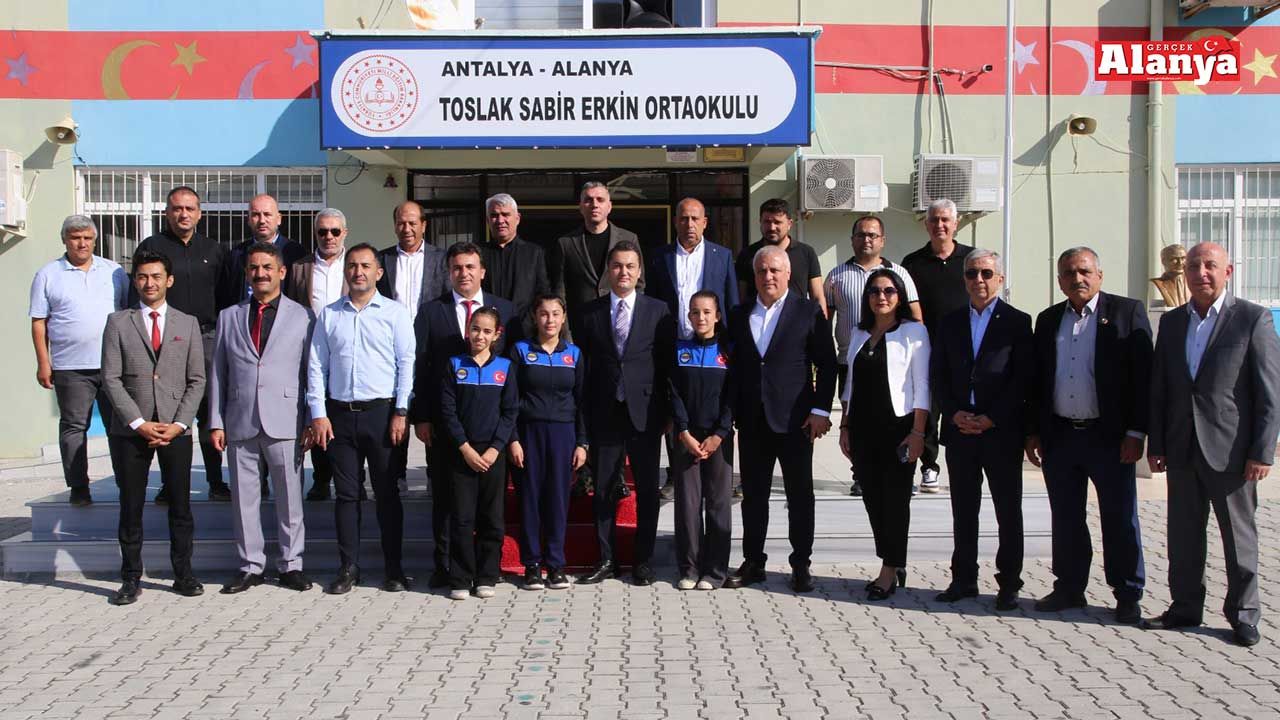 Alanya Kaymakamı Şakir Öner Öztürk, Alanya Ticaret ve Sanayi Odası (ALTSO) Başkanı Eray Erdem, İlçe Millî Eğitim Müdürü Yusuf Yılmaz, ALTSO Meclis Başkanı Mehmet Kural ve ALTSO Yönetim Kurulu üyeleri, Toslak İlkokulu ve Toslak Sabir Erkin Ortaokulu’nu ziyaret ederek öğrencilere eşofman ve spor malzemesi dağıtımı gerçekleştirdi.