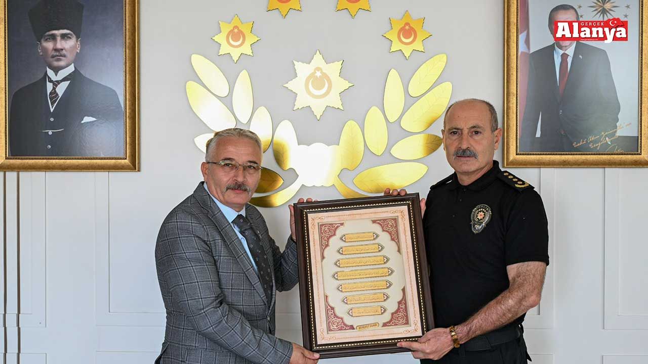 Antalya İl Emniyet Müdürü Dr. Sabit Akın Zaimoğlu’na hayırlı olsun ziyaretleri sürüyor. Zaimoğlu’nu son olarak Anavatan Partisi Tüm Teşkilatlardan Sorumlu Akdeniz Bölge Başkanı ve Genel Başkan Yardımcısı Murat Kurtbey ile Anavatan Partisi Alanya İlçe Başkanı Durdu Söyler ile İlçe Yönetim Kurulu üyeleri ziyaret etti. Ziyarette Emniyet Müdürü Zaimoğlu ile partililer Antalya ve güvenlik konularında sohbet etti. Ziyaret sonunda Kurtbey, Antalya İl Emniyet Müdürü Dr. Sabit Akın Zaimoğlu’na hediye takdim etti. - Tülay Şengün