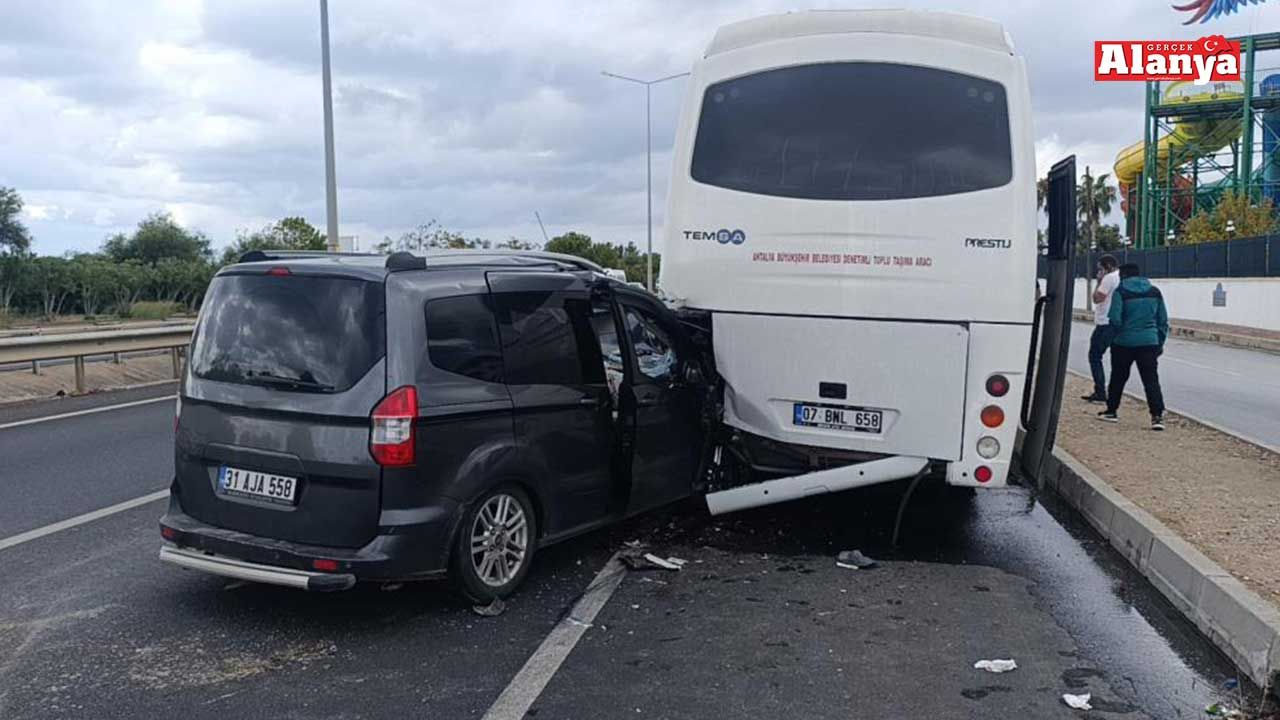 Kaza, Alanya-Manavgat D-400 Karayolu'nda meydana geldi. Edinilen bilgiye göre, A.İ. idaresindeki 31 AJA 558 plakalı hafif ticari araç, aynı yönde giden yolcu almak için yavaşlayan E.S.'nin kullandığı 07 BNL 658 plakalı yolcu midibüsüne arkadan çarptı. Kazada hafif ticari araç sürücüsü A.İ. ile yanındaki F.İ. yaralandı. Çevredeki vatandaşların ihbarı üzerine sağlık ve polis ekipleri sevk edildi. Yaralılar, sağlık ekiplerince yapılan ilk müdahalenin ardından Manavgat Devlet Hastanesi'ne kaldırıldı. Yaralılardan F.İ.'nin durumunun ağır olduğu öğrenilirken kazayla ilgili inceleme başlatıldı. Kaza anı ise güvenlik kamerasına anbean yansıdı. - İHA