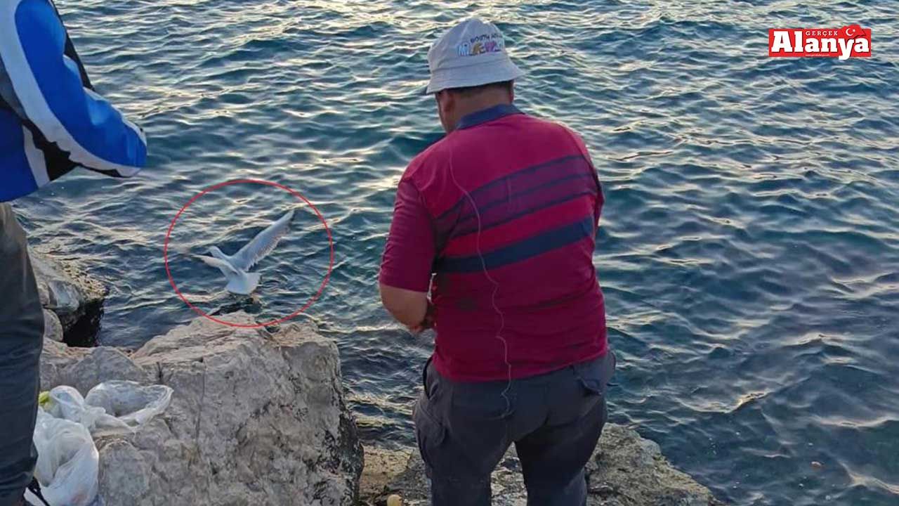 Akşam saatlerinde Kaleiçi Yat Limanı'nda bulunan mendireğe balık tutmaya gelen bir vatandaşın oltasına balık yerine bu kez martı takıldı. Balık tutmak amacıyla oltasını sallayan balıkçının iğnesi o sırada havada uçmakta olan martıya takıldı. Kanadına takılan iğne nedeniyle suya düşen martıyı gören hayretler içerisinde kalan balıkçı oltasına takılan martıyı kıyıya çekti. Kanadına takılan iğneyi çıkartan balıkçının doğaya bıraktığı martı uçarak gözden uzaklaştı. – İHA