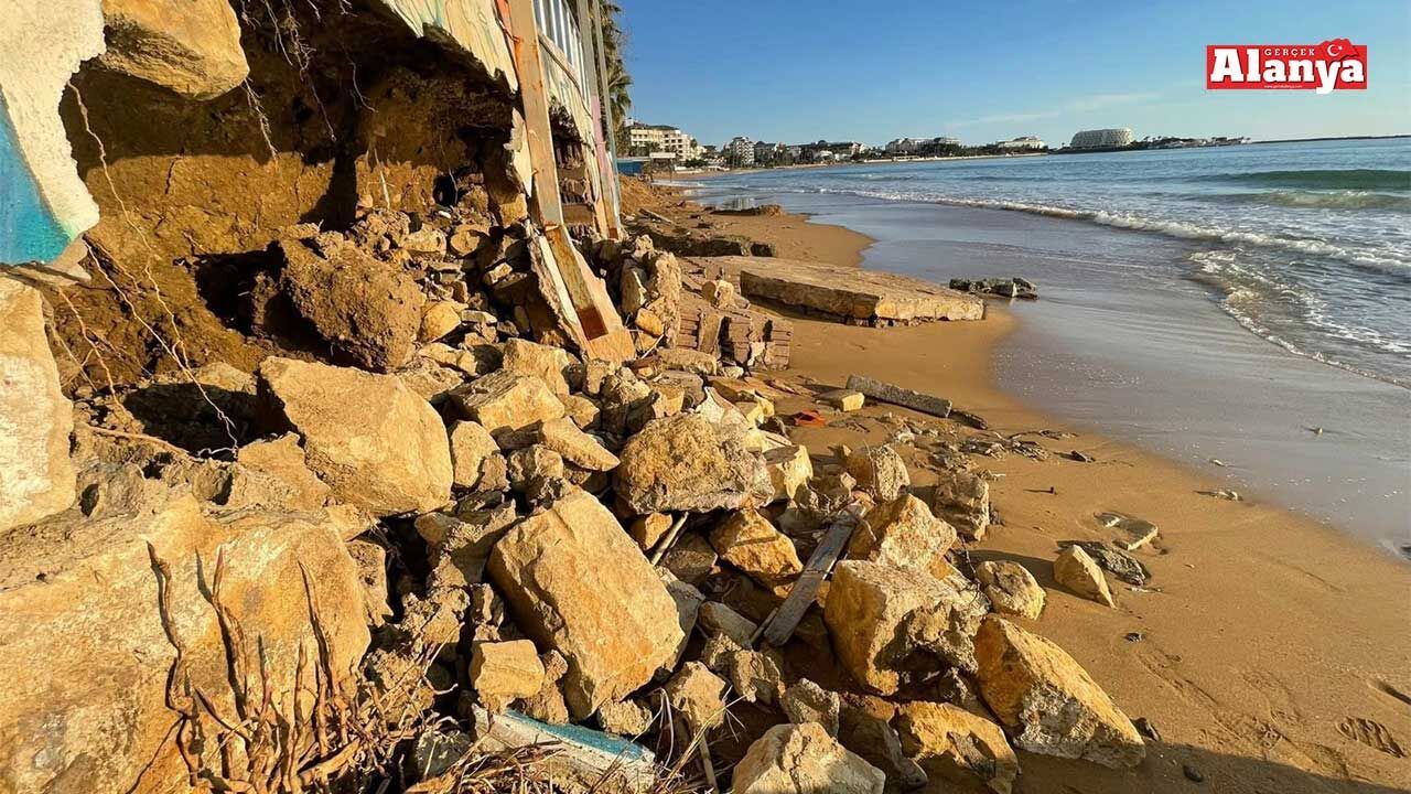 Avsallar Mahallesi’nde etkili olan dalgalar plajda yer alan işletmelere zarar verdi. Dalgaların etkisiyle plajlarda yer alan bazı işletmelerin duvarları zarar görürken, bazı betonarme bölümler de kumun üzerine devrildi.
