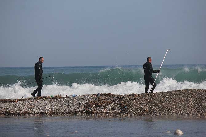 Jandarma Arama Kurtarma, Sahil Güvenlik Komutanlığı ve İnsani Yardım Vakfı (İHH) sualtı ekipleri ve JAK köpekli arama timleri sabah saatlerinden beri dere içinde belirlenen ve yeniden aranması istenen şüpheli noktaları taradı.