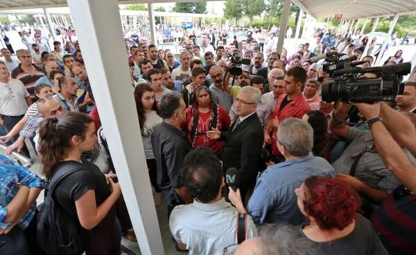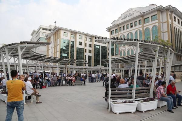 Adliyedeki genel aramanın ardından yapılan anonslarla son durum adliye bahçesindeki vatandaşlara duyuruldu.