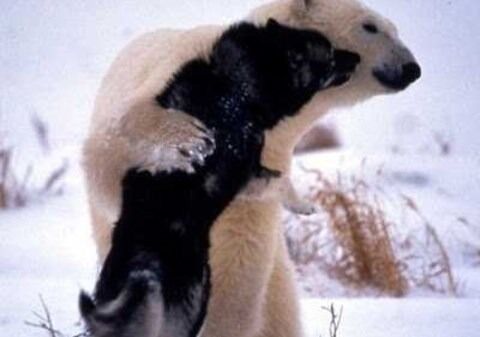 Bu fotoğrafta kutup ayısı Sibirya kurtlarıyla oynuyor. İlk başta kutup ayısının saldıracağını düşünen Rosing, kutup ayısının tekrar Sibirya kurtlarını ziyarete geldiğini söylüyor.