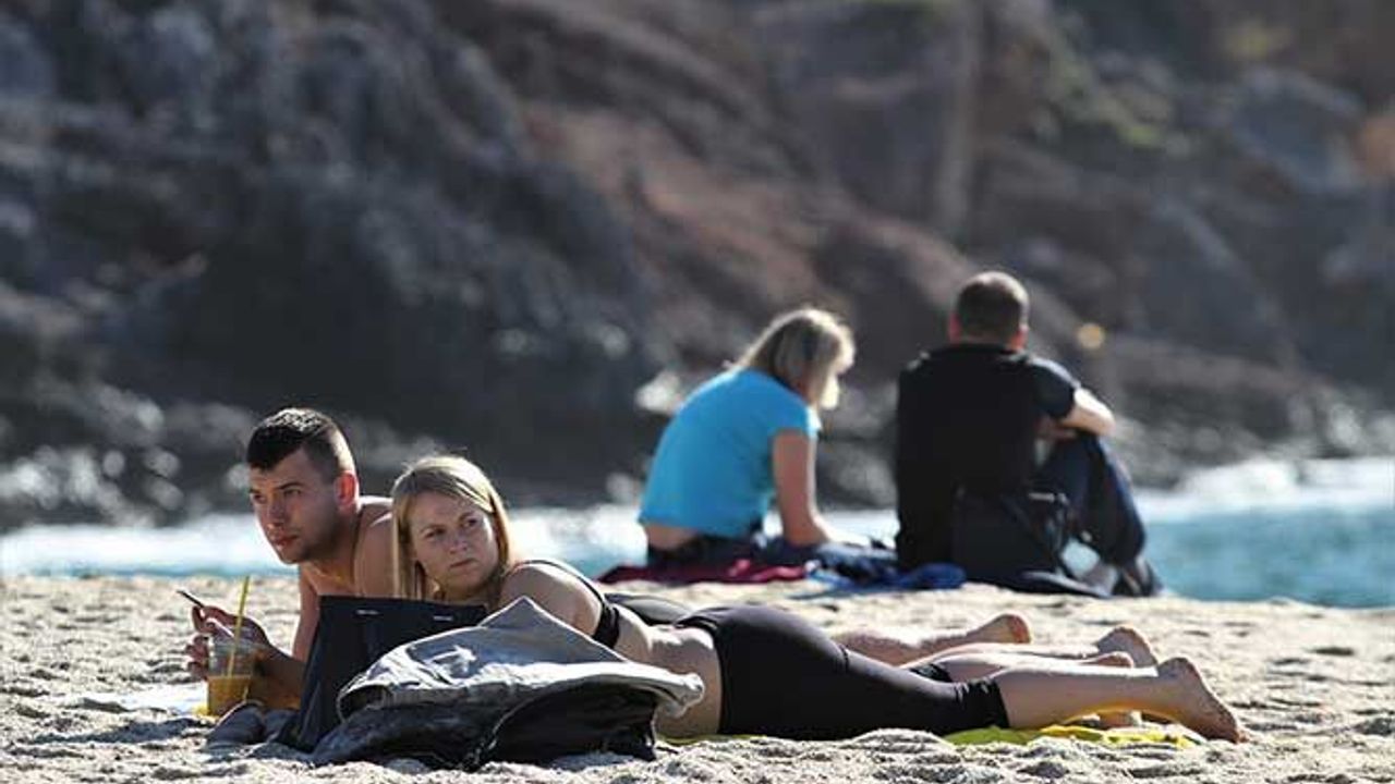Yerli ve yabancı tatilciler Aralık ayının sonu yaklaşmasına rağmen sıcak havanın tadını denize girerek ve güneşlenerek çıkardı.