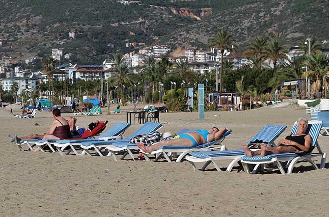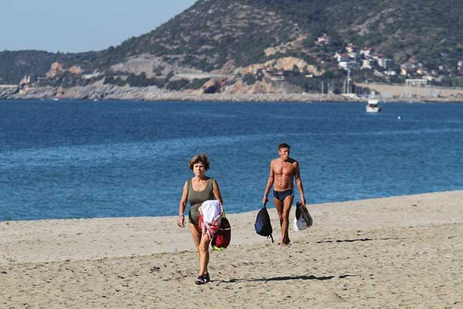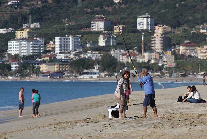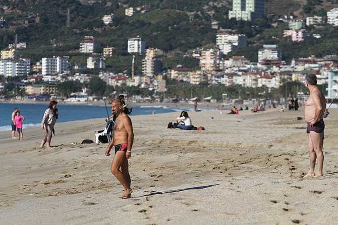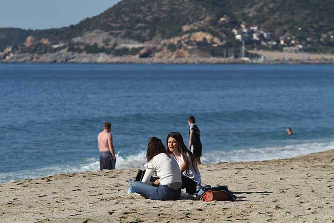 Hava sıcaklığının 19, deniz suyu sıcaklığı 18.6, nem oranının ise yüzde 45 derece ölçüldüğü ilçede güneşli havayı fırsat bilen tatilciler ve yerli halk, dünyaca ünlü Kleopatra, Keykubat ve Damlataş plajlarında denize girdi ve güneşlenmenin keyfini çıkardı.