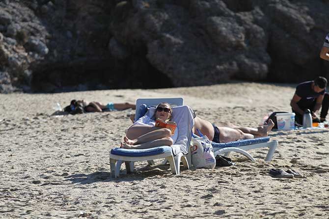 Bazı turistler kumlara kendilerini atıp güneşlenirken müzik dinleyerek kitap okudu.