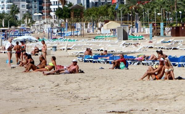 İlçenin ünlü Kleopatra ve Damlataş plajlarına gelen tatilcilerin bazıları sahilde yürümeyi tercih ederken, bazıları ise şezlonglarda güneşlenip denize girdi.
