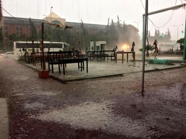 Özellikle sahil kesimine ceviz büyüklüğünde dolu taneleri düştü. Yoğun dolu yağışı nedeniyle bazı bölgeler kar gibi beyaza büründü. Rögar ve mazgalların tıkandığı bölgede su birikintileri oluştu.