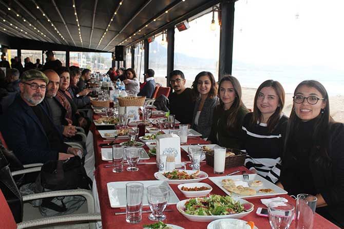 AGC üyeleri çelenk sunma töreninin ardından Öztürk Kolcuoğlu Restoran’da öğlen yemeği yedi. Yemeğe, Alanya Kaymakamı Mustafa Harputlu, Alanya Belediye Başkanı Adem Murat Yücel, siyasi partilerin ilçe teşkilatlarının temsilcileri, kurum ve birim amirleri, oda başkanları ve AGC üyeleri katıldı.