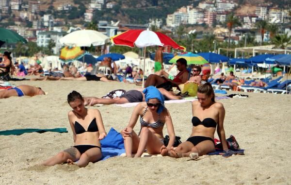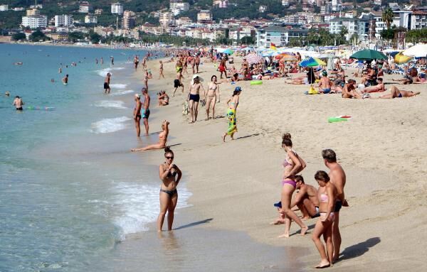 Turistler Damlataş, Kleopatra ve Keykubat plajlarında dalgalı olmasına rağmen denizde yüzdü, bazıları da şezlonglarda güneşlendi.
