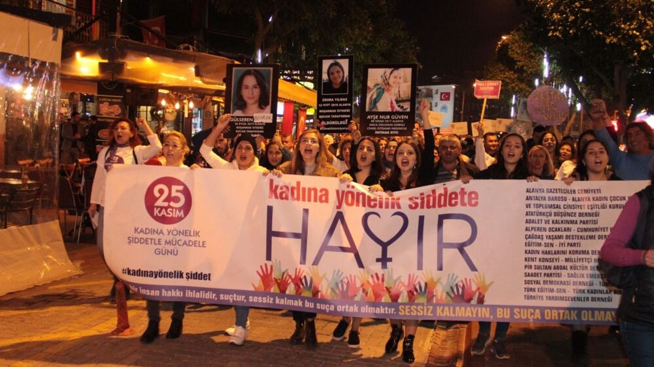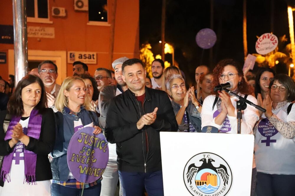 Kadına Yönelik Şiddetle Mücadelede Uluslararası Dayanışma Günü kapsamında Alanya Belediye Başkanı Adem Murat Yücel, CHP İl Başkanı Ahmet Kumbul, AK Parti İlçe Başkanı Mustafa Toklu, MHP İlçe Başkanı Mustafa Türkdoğan, CHP İlçe Başkanı Coşkun Karadağ, Alanya Kent Konseyi Başkanı Nurhan Özcan, siyasi parti kadın kolları üyeleri, gençlik kolları üyeleri, kadın dernekleri üyeleri ve çoğunluğu kadın olan yaklaşık bin kişi Atatürk Anıtı önünde toplandı.