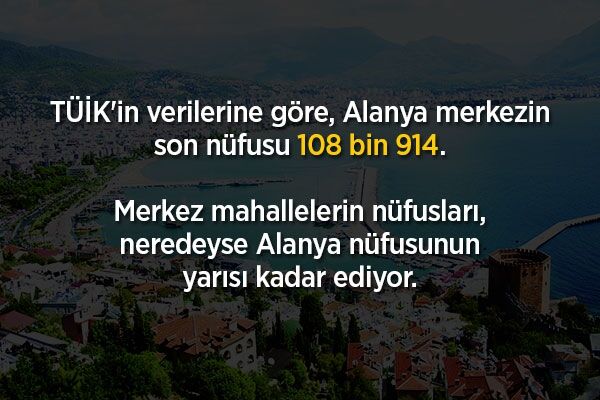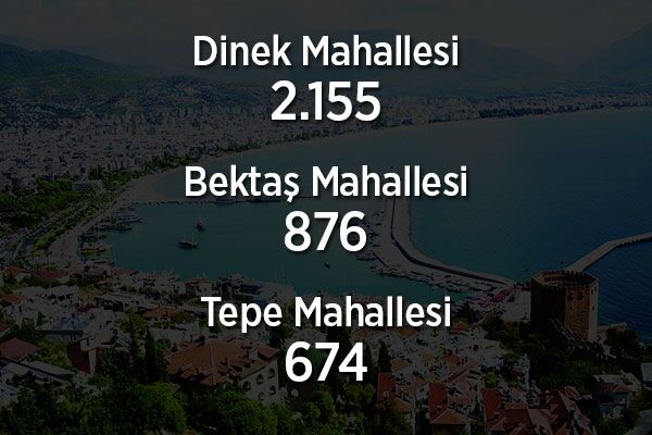 2014 yerel seçimleri sonrası gelen Büyükşehir yasası ile belde belediyeler kapatılarak mahalleye dönüştürülen Alanya’nın beldelerinde toplam nüfus 155 bin 378 olarak açıklandı.
