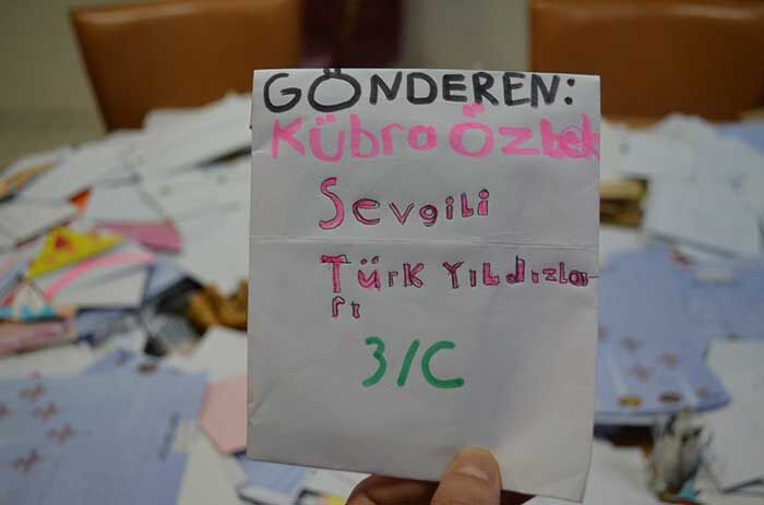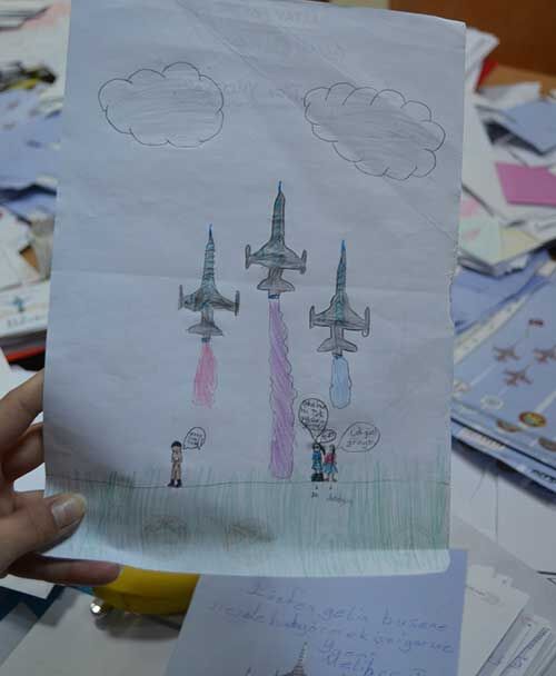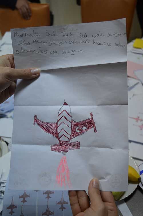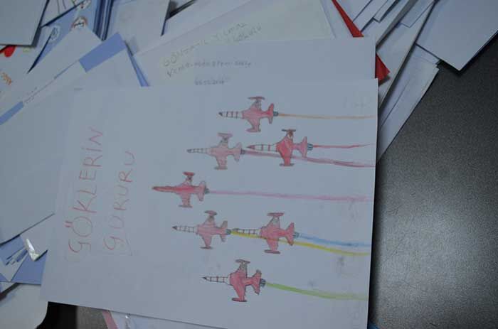 Öğrencilerden, Dünyanın en iyi gösteri timi olarak gösterilen ve Türk Hava Kuvvetleri’nin gözbebeği konumundaki Türk Yıldızlarını ilçeye davet eden mektuplar yazmaları istendi.