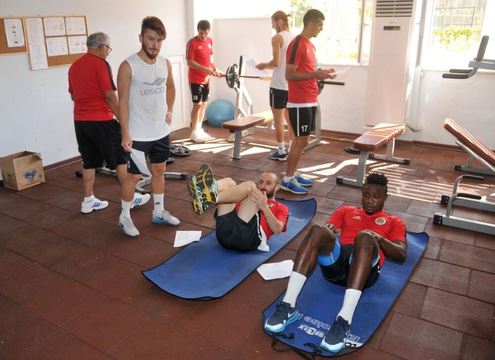Teknik Direktör Hüseyin Kalpar ve yardımcılarının gözetiminde yapılan antrenman Zimbitlik sahasında ısınma çalışmasıyla başlayarak salonda kuvvet çalışmasıyla devam etti.