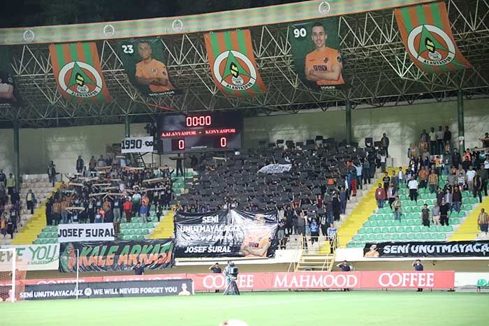 Alanyaspor Konyasporlu futbolcular seremoni öncesi ise hem İngilizce hem de Türkçe ‘Seni asla unutmayacağız Josef Sural’ ve ‘Acınız, acımızdır’ yazılı pankartlarla sahaya çıktı.