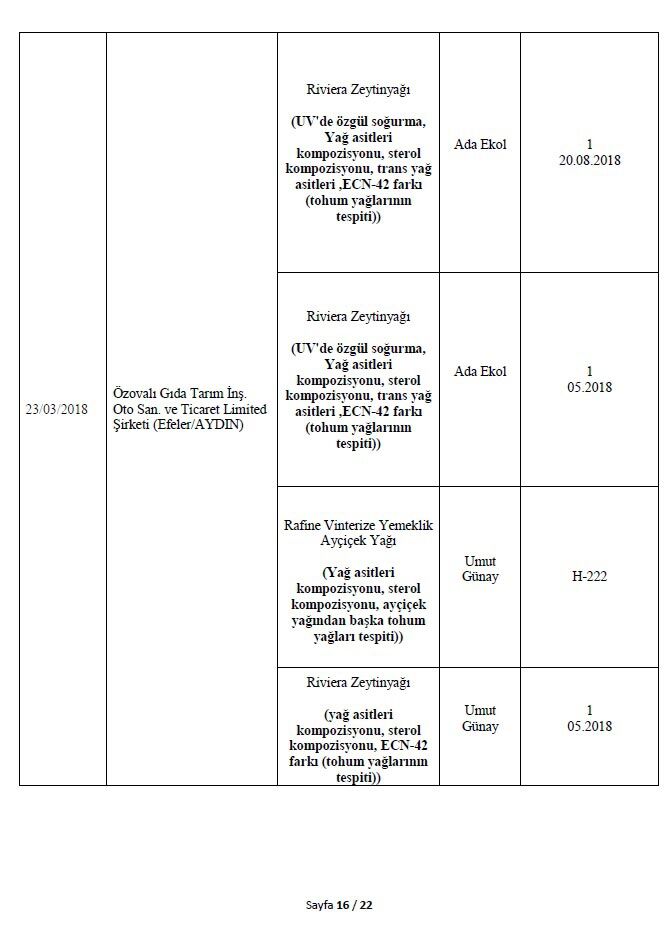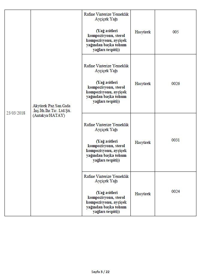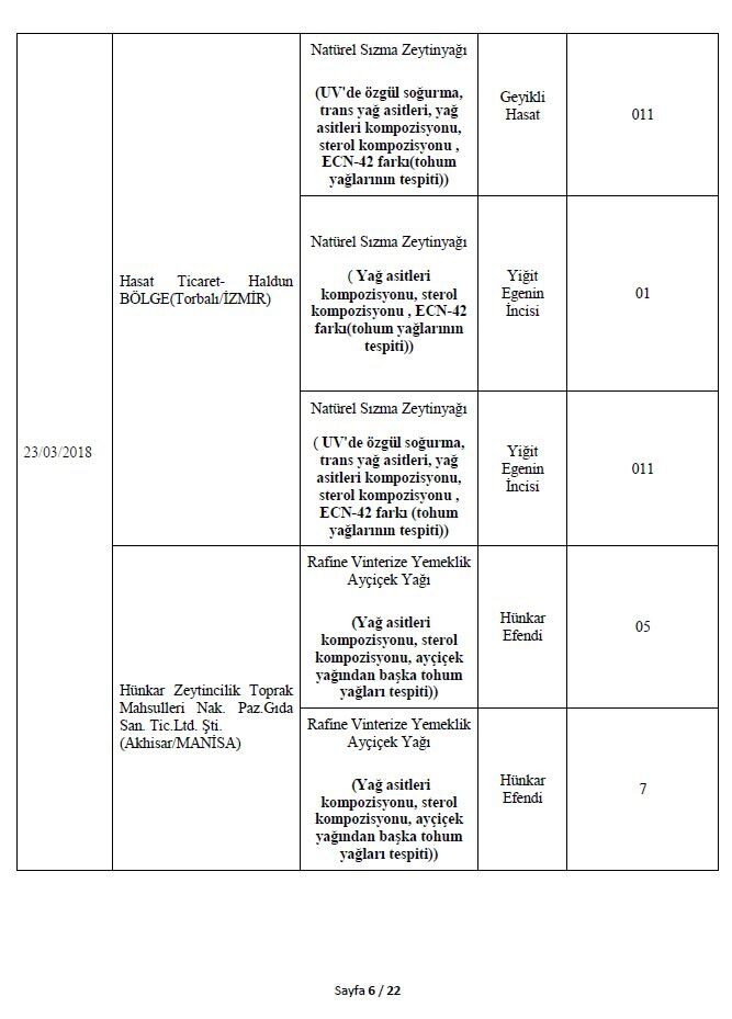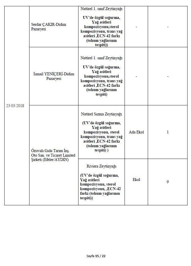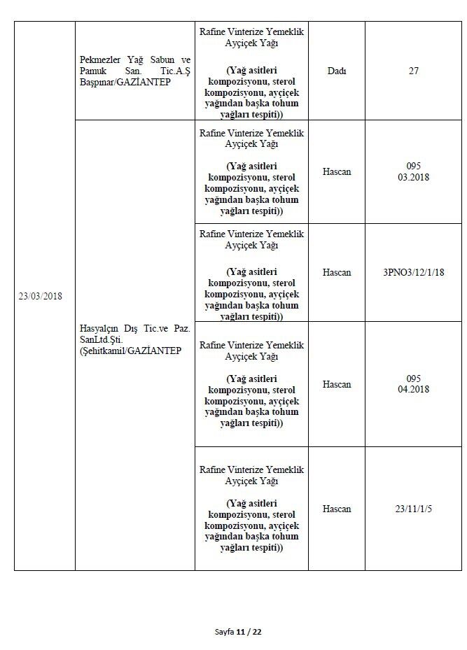Balda da taklit ve tağşişle üretilen 15 parti ürün açıklamada yer aldı.