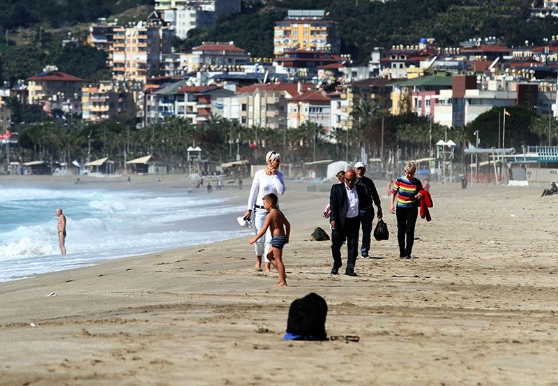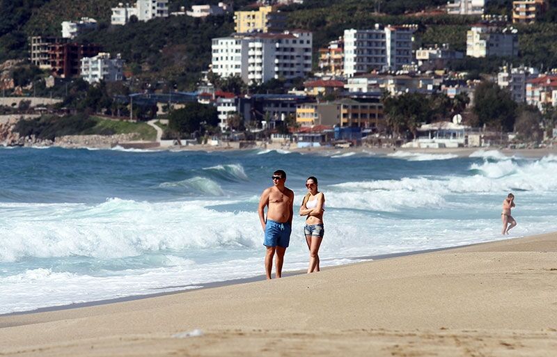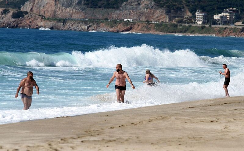 Güneşli havayı fırsat bilen turistler ve vatandaşlar Kleopatra, Keykubat ve Damlataş plajlarında denize girdi.