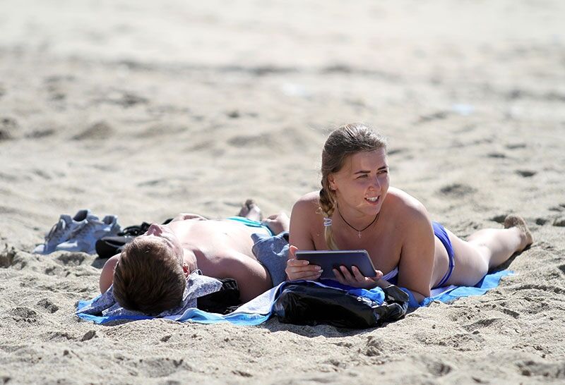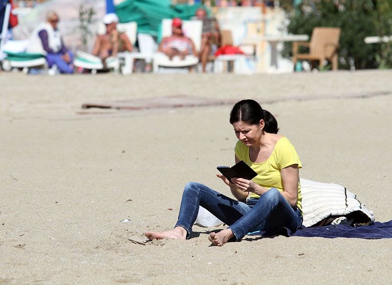 Kumlara, şezlonglara uzanan tatilciler, kitap okudu ve uzun süre güneşlendi.