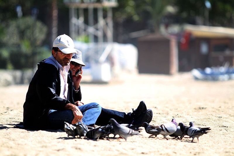 Sıcak havanın etkisiyle sahil kenarlarına gelen güvercinler ise renkli görüntüler oluşturdu.