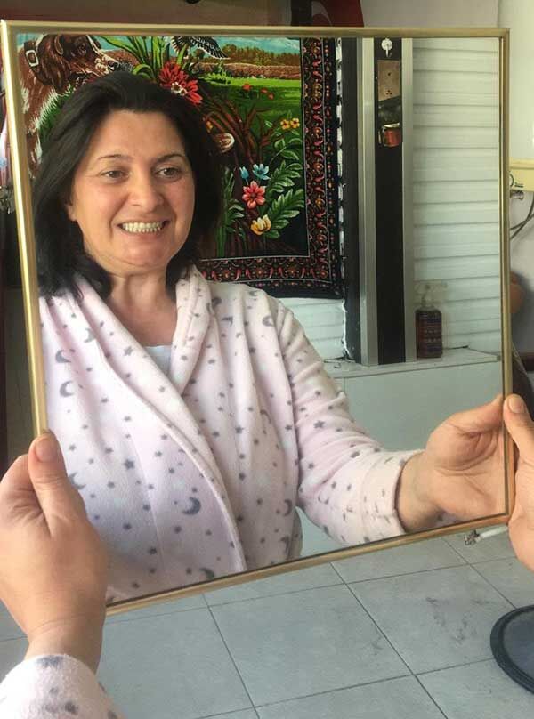 8 aylık tedavinin ardından protez dişlerin hazırlandığını ancak sinirlerin kesildiği bölgedeki ağrılar yüzünden kullanamadığını belirten Öztürk, 1,5 yıl aradan sonra gerçek dişleriyle olmasa da protez dişlerle tekrar aynanın karşısına geçti. Daha önce aynaya bakmaya korkan Öztürk, bu sefer gülücükler saçarak, "En azından dişler takıldı. Kullanamıyorum ama biraz daha rahatlattı beni. Her şeyi yiyemiyorum, yemeye gayret gösteriyorum. Şu anda gülüyorum. Dişlerim var. Ne kadar kullanamasam da dişlerimi takabiliyorum. Zorlanıyorum biraz ama yine de kullanmaya çalışıyorum. Aynaya bakıp da gülmek bile çok güzel. Kullanamasam da bu kadarı bile şimdilik yeter" ifadelerini kullandı.