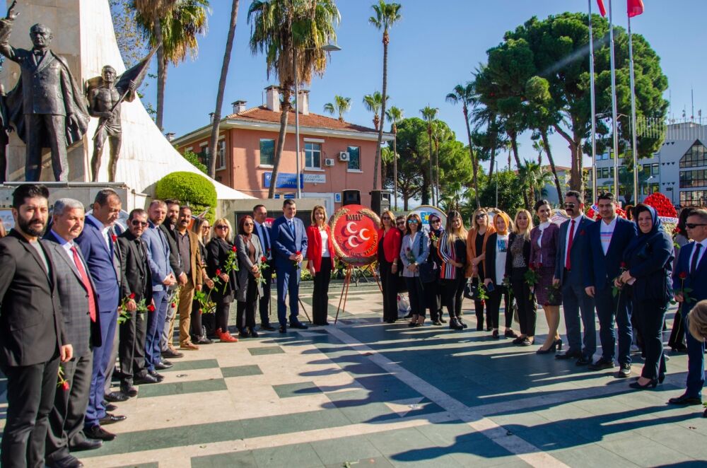 Düzenlenen törende Belediye Başkanlığı, Kent Konseyi, Atatürkçü Düşünce Derneği, ALTSO Kadın Girişimciler Derneği ve siyasi partilerin çelengi Atatürk Anıtı’na sunuldu.