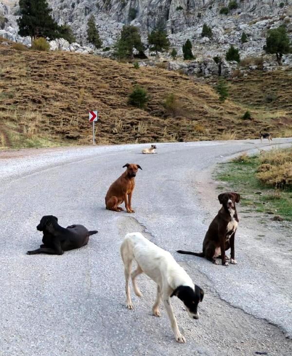 Çevredeki su kaynakları yakınında gruplar halinde dolaşan köpekler, yiyecek ve içecek arıyor. Hayvanların durumunu gören bazı çevreciler ise bölgeye köpek maması bırakarak beslenmelerine yardımcı olmaya çalışıyor. Bazı köpeklerin kulağında küpe izleri olduğu görülüyor.