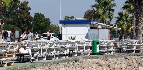 Ahşap şezlonglar, bir dahaki sezonda kullanılmak üzere bakıma alınacak.