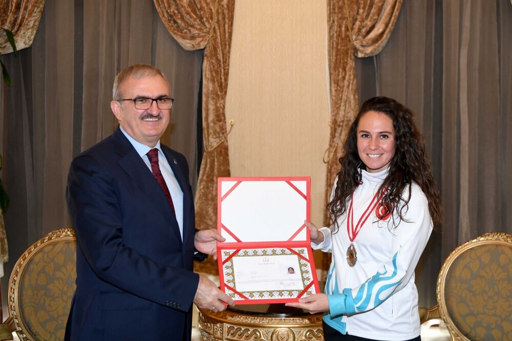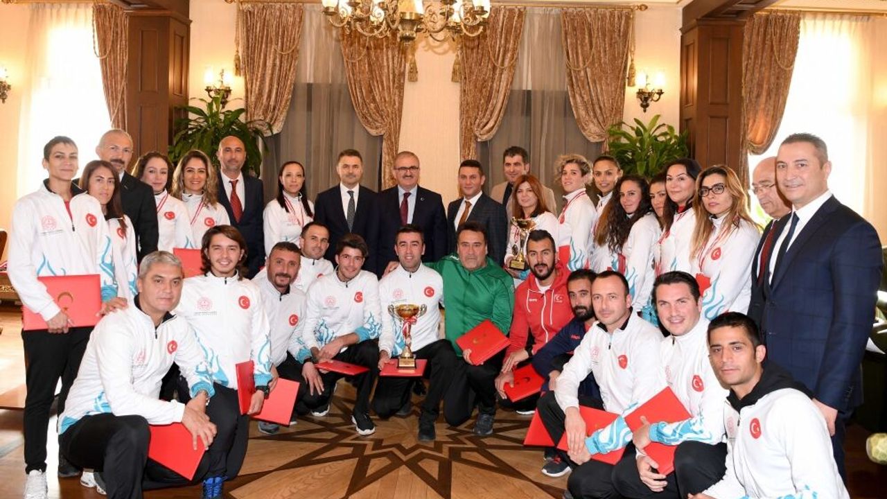Öğretmenleri tebrik eden Vali Münir Karaloğlu, konuşmasının ardından kupa kazanan öğretmenlere tek tek başarı belgelerini takdim etti.