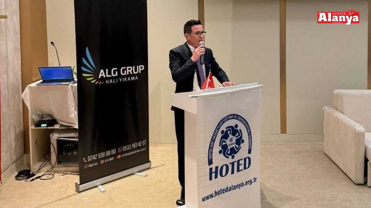 Hotel Kat Hizmetleri Eğitimi ve Dekorasyonu Derneği’nin (HOTED) eğitim seminerleri devam ediyor. HOTED 170’inci seminerini ALG Grup – Alanya Halı Yıkama firmasının destek ve katkılarıyla Serenity Queen Hotel’in ev sahipliğinde gerçekleştirdi. ‘Otellerde Profesyonel Halı, Koltuk ve Yatak Temizliği’ konulu eğitim semineri HOTED üyeleri tarafından büyük ilgi gördü. Dernek başkanı Sevgi Topuzel’in ALG Halı Yıkama firması yetkilileri ve Serenity Queen Hotel yönetimine teşekkür etmesiyle başlayan seminer, ALG Halı ve Koltuk Yıkama Fabrikası Yönetim Kurulu Başkanı Levend Geldi’nin sunumuyla otellerde ve evlerde kullanılan yatak, koltuk ve halı temizliğinde dikkat edilmesi gereken tüm detaylar masaya yatırıldı.