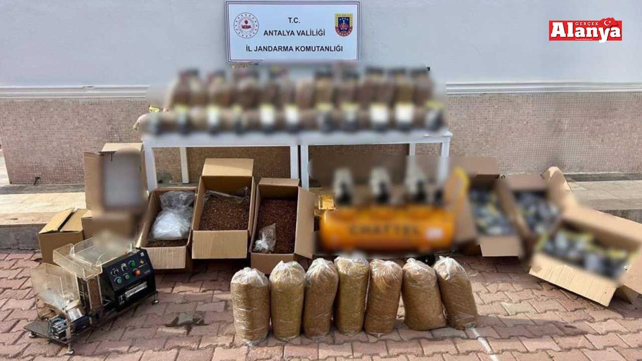 Antalya Cumhuriyet Başsavcılığı talimatıyla yürütülen çalışmalar kapsamında Kepez’de belirlenen iki ayrı adrese baskın düzenleyen İl Jandarma Komutanlığına bağlı ekipler, 1 adet kompresörlü sigara basma makinesi, 1 adet kompresör, 350 kilogram kıyılmış tütün, 30 bin 200 adet makaron ve 370 adet ambalajlı tütün ele geçirdi. Olayla ilgili soruşturma başlatıldı.- İHA