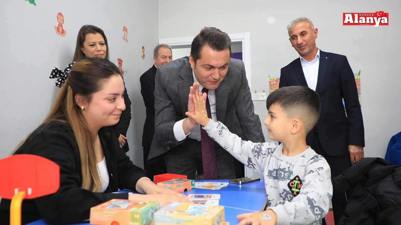 Alanya Kaymakamı Şakir Öner Öztürk, Alanya Çınar Özel Eğitim ve Rehabilitasyon Merkezi’ni ziyaret etti. Ziyaret kapsamında okul yönetimi ile bir araya gelen Kaymakam Öztürk, Kurum Müdürü Yasin Yiğitbay'dan okulda yürütülen eğitim faaliyetleri ve öğrencilerimizin genel durumu hakkında detaylı bilgiler aldı. Daha sonra sınıfları gezerek özel gereksinimli öğrencilerle yakından ilgilenen ve onlarla keyifli vakit geçiren Kaymakam Öztürk özel çocuklarımızın hayata kazandırılmasında emeği geçen tüm idareci ve öğretmenlere teşekkür etti.