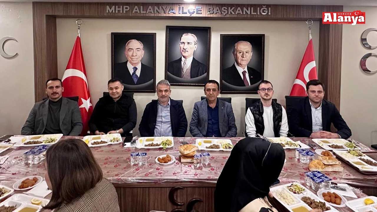MHP Alanya İlçe Teşkilatı tarafından Ramazan ayı nedeniyle iftar programı düzenlendi. Parti binasındaki iftar programına MHP Alanya İlçe Başkanı Mustafa Sünbül, Alanya önceki dönem Belediye Başkanı Adem Murat Yücel, MHP Antalya İl Başkan yardımcıları Mustafa Çörekçi, Alp Yatıkçı, Selçuk Güven Ülker, MHP Alanya İlçe Yönetim Kurulu üyeleri, MHP Kadın "Aile Çocuk Engelli Politikaları (KAÇEP) Başkanı Halime Türk, Alanya Ülkü Ocakları Başkanı Yunus Kerim Sezer ile belediye meclis üyeleri katıldı.