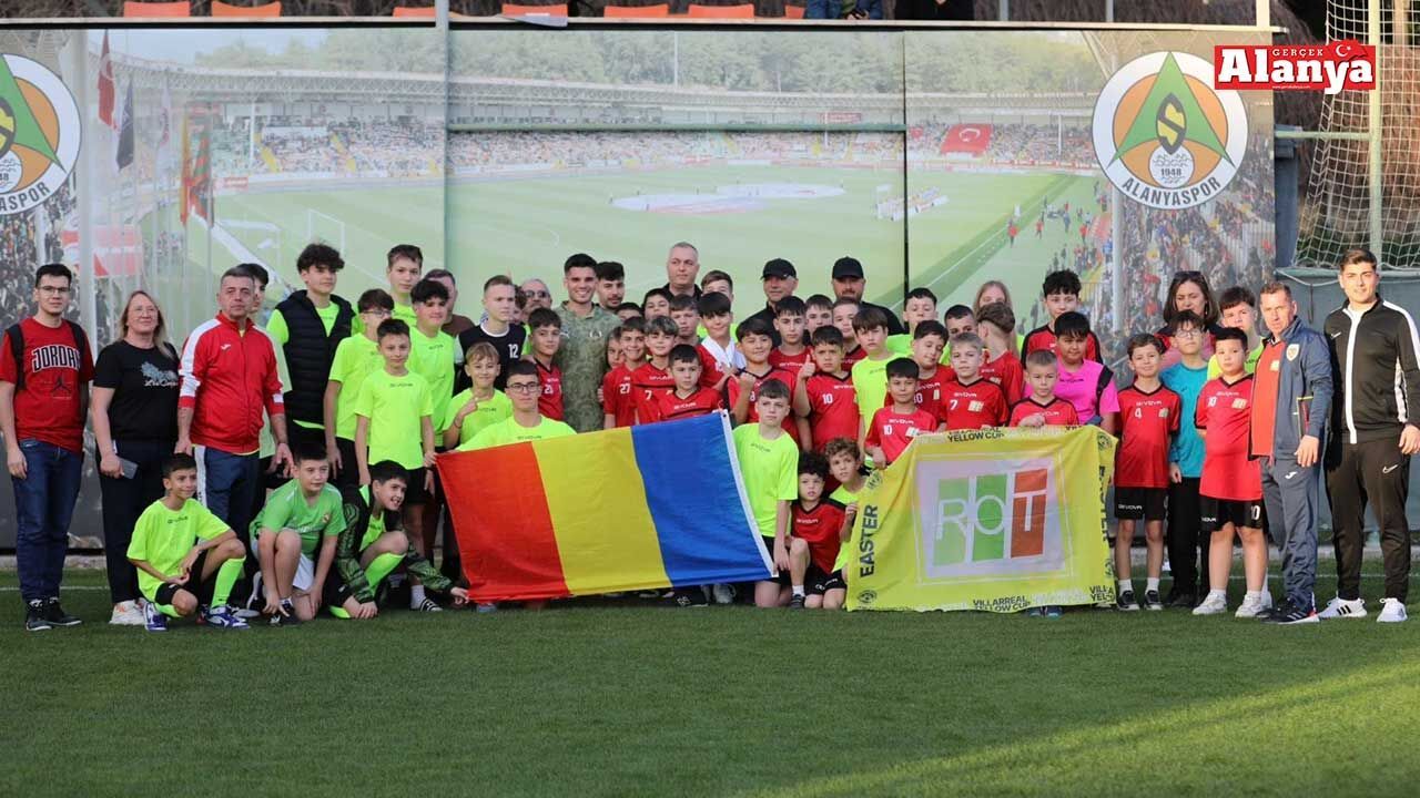 Romanya’nın Prosport Focsani ve ROT Tecuci futbol okulu öğrencileri Alanyaspor’un antrenmanının ardından futbolcu Ianis Hagi ile bir araya geldi. Antrenmanı izleyen minik sporcular, daha sonra Hagi ile fotoğraf çektirip, imza aldı.