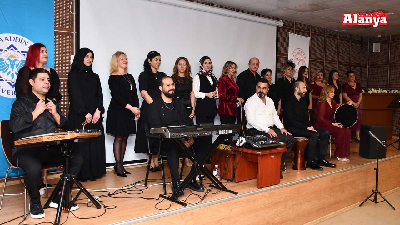 Alanya Eğitim ve Araştırma Hastanesi’nde (EAH) görev yapan sağlık çalışanları, Şef Hadi Cantemur’un önderliğinde hastanenin konferans salonunda sahne aldı. Hastane personelini bir araya getiren özel etkinlik, bir dakikalık saygı duruşu ve İstiklal Marşı’nın okunmasıyla başladı. Türk Müziği Korosu’nda yer alan sağlık çalışanları, solo ve koro performanslarıyla dinleyicilerden tam not aldı. Günün anlam ve önemine ilişkin konuşma yapan Alanya EAH Başhekimi Prof. Dr. Banu Karakuş Yılmaz, emeği geçen herkese teşekkür etti. Prof. Dr. Karakuş Yılmaz, “Ben Mevlana Celaleddin-i Rumi’nin sözüyle başlamak istiyorum: ‘Sevgi şifadır. Sevgi ile acılar tatlıya döner.’ Umarım kalbinizden geçen tüm güzellikler ve sevgi dolu sözler, acılarınızı şifaya dönüştürür. Sağlık çalışanlarımızın bu emeğine katılarak ortak olduğunuz için sizlere de teşekkür ederim” ifadelerini kullandı. Gece boyunca sahnede adeta devleşen sağlık çalışanları, performanslarıyla büyük beğeni toplarken; dinleyiciler de şarkılara eşlik ederek gönüllerince eğlendi. Sevgi Haftası’na yakışır bu anlamlı etkinlik, katılımcılara hem moral hem de unutulmaz anlar yaşattı.