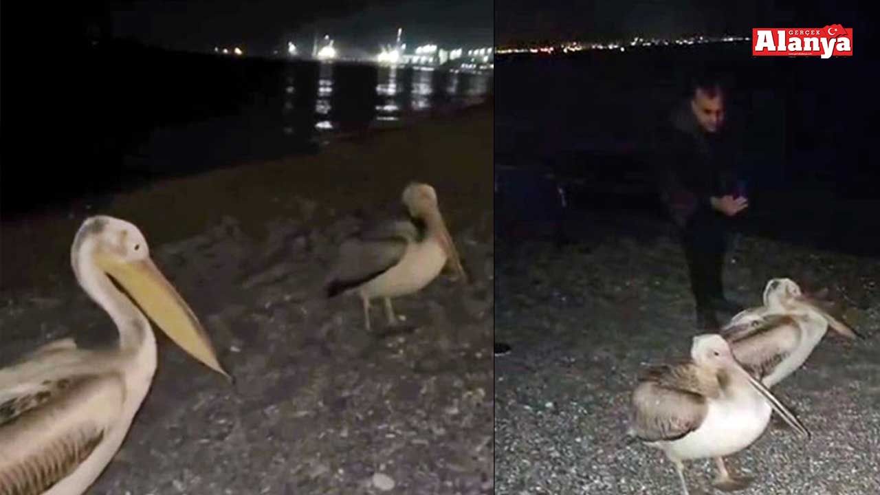 Önceki akşam saatlerinde Konyaaltı Sahili'ne gelen vatandaşlar, yetişkin 2 ak pelikanı görünce şaşkınlık yaşadı. O anları cep telefonuyla kayda alan vatandaşlar, yanına kadar gittikleri pelikanları ilgiyle izledi. Bir süre sonra bölgeden uzaklaşan pelikanların, yorgunluk nedeniyle sahile indikleri değerlendiriliyor. – İHA