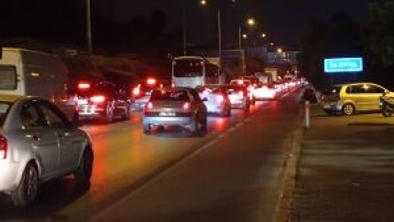 Alanya'da akşam saatlerinde polis ekiplerinin trafikte yaptığı denetimlerin ardından ilçe girişinde uzun araç kuyrukları oluştu.