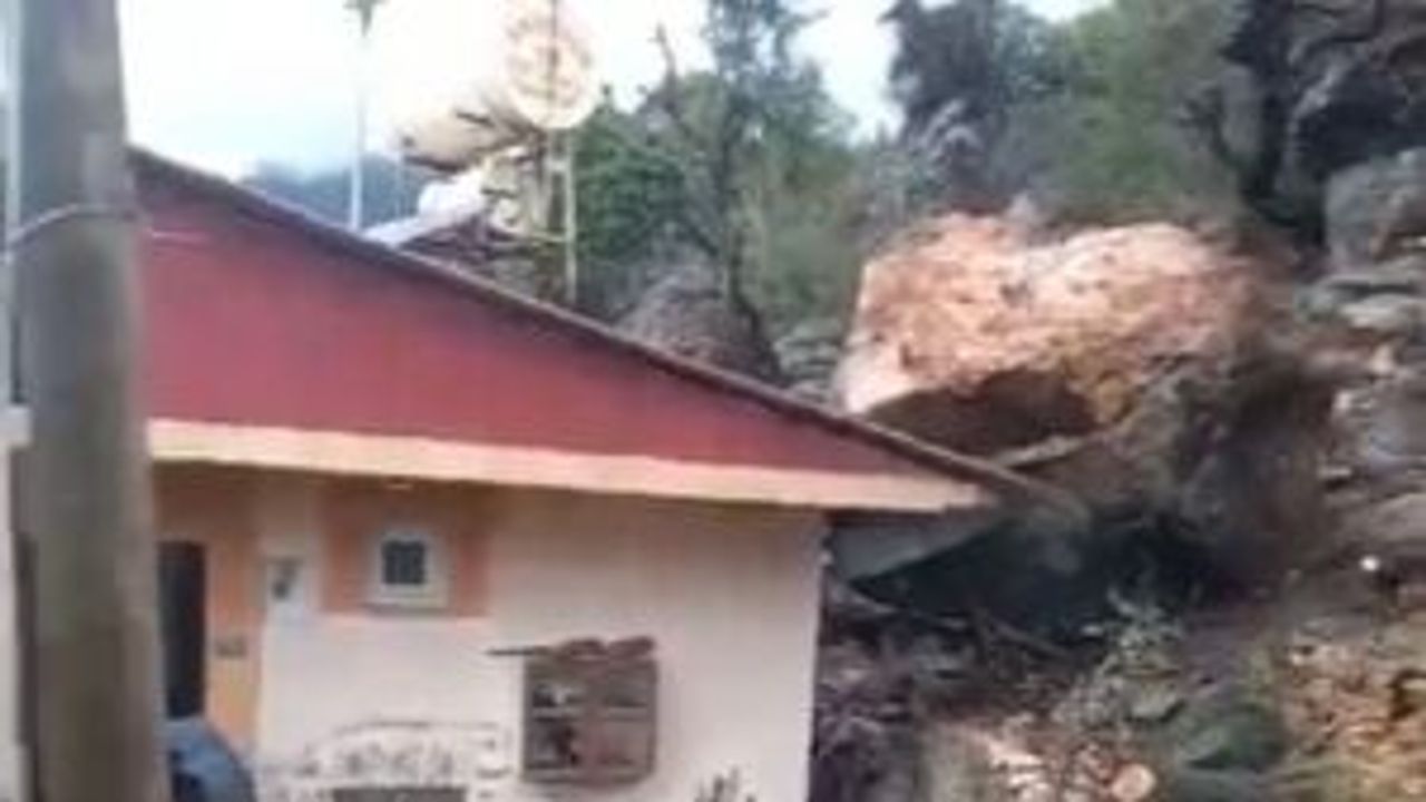 Alanya’da aşırı yağışlardan dolayı kopan kaya parçası, bir evin üzerine düştü. Olayda şans eseri yaralanan olmadı. -Mehmet AL