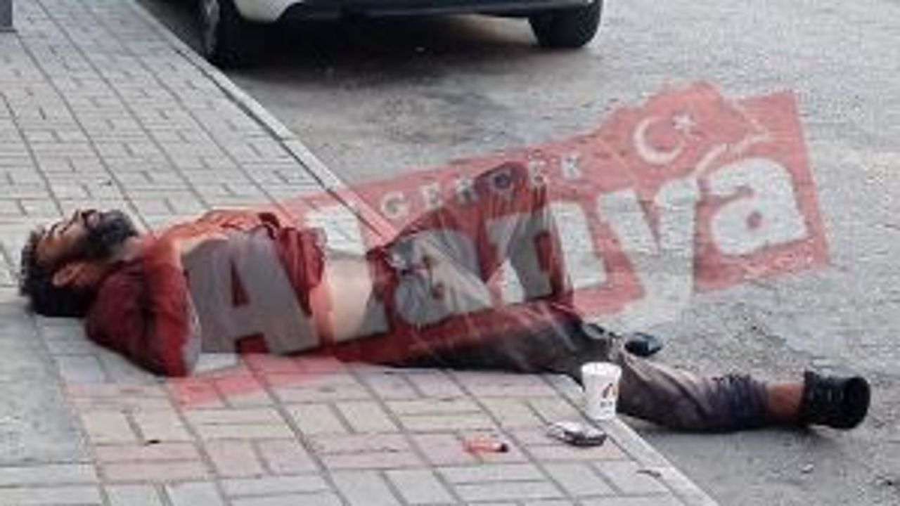 Alanya'da sabah saatlerinde kaldırımda uyuyup kalan vatandaşı görenler şaşkınlık yaşadı. -Erkan Uysal