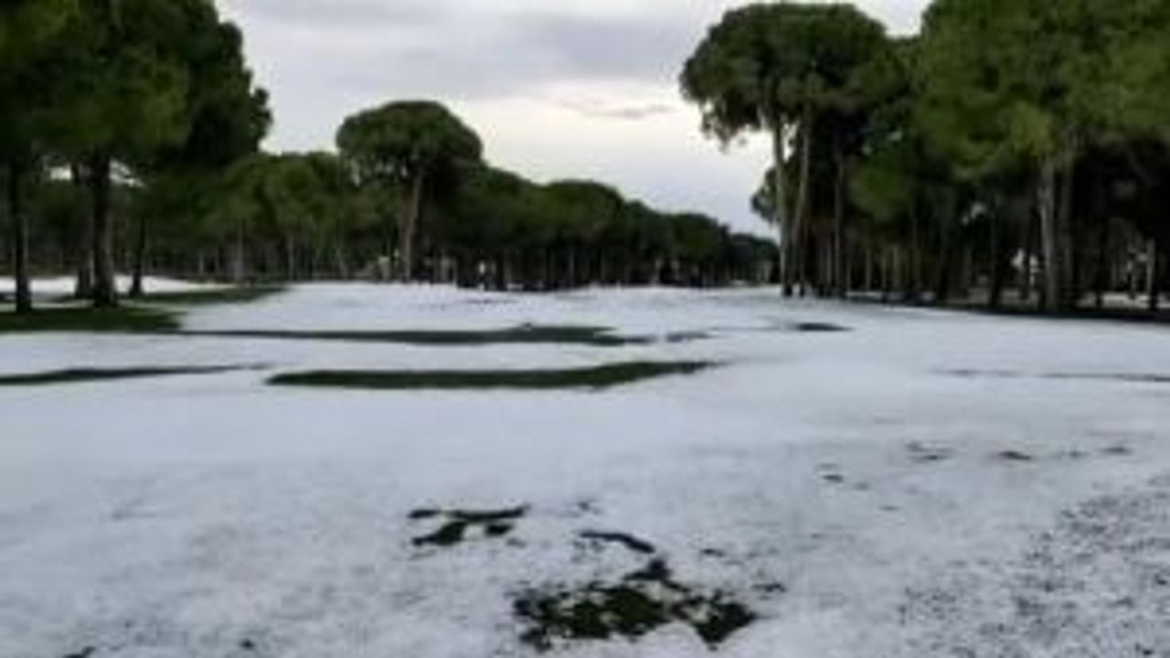 Aniden bastıran dolu, Antalya'da golf sahalarını beyaza bürüdü