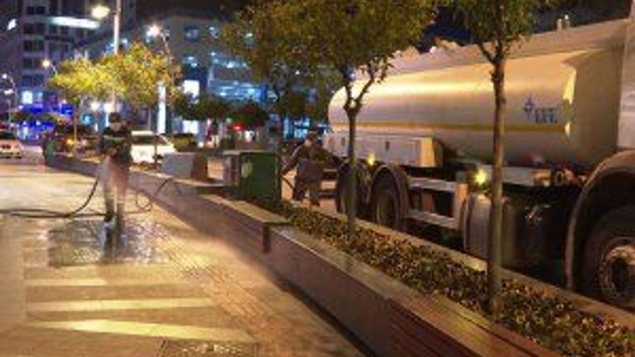 Antalya'da yollar yıkanarak dezenfekte ediliyor