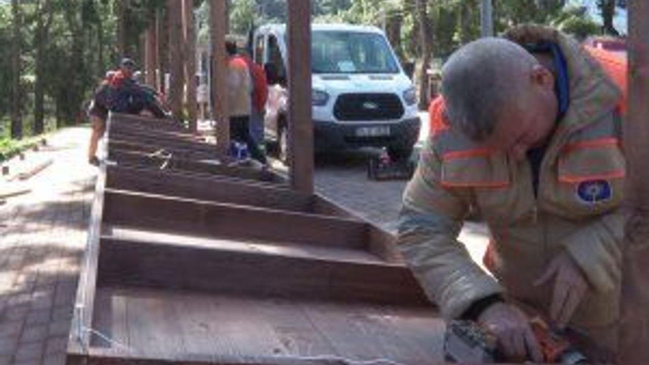Konyaaltı İlçesi Doyran Mahallesi’nde yerel üreticilerin ürünlerini sunma imkanı bulduğu pazar yerine üreticiler için modern tezgahlar yapılıyor. Pazar yerindeki yetersiz olan tezgah sayısı da artırılıyor.