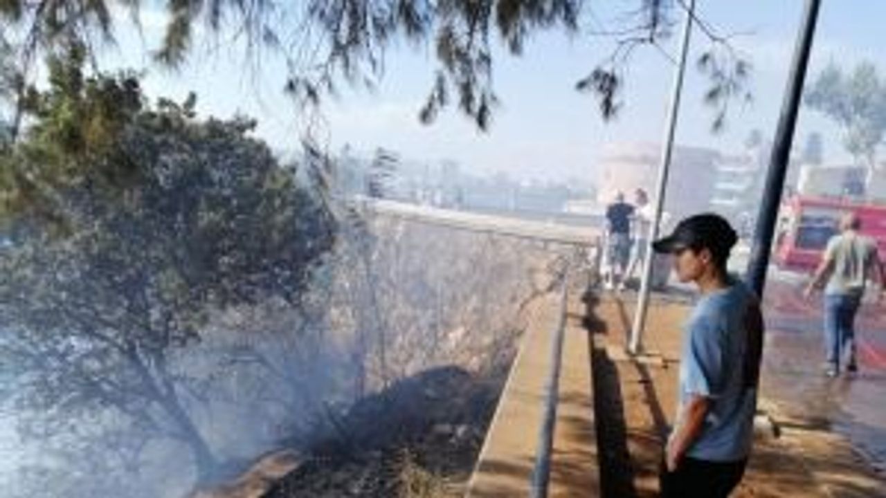 Antalya'da falezlerdeki çalılık alanda çıkan yangın, itfaiye ekipleri tarafından kısa sürede söndürüldü. - İHA